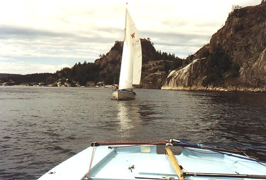 | Kjøpmannsfjd. by Kragerø . | Fluky winds - Neel checks the boom | Arr. Svenner Lighthouse . | ||||