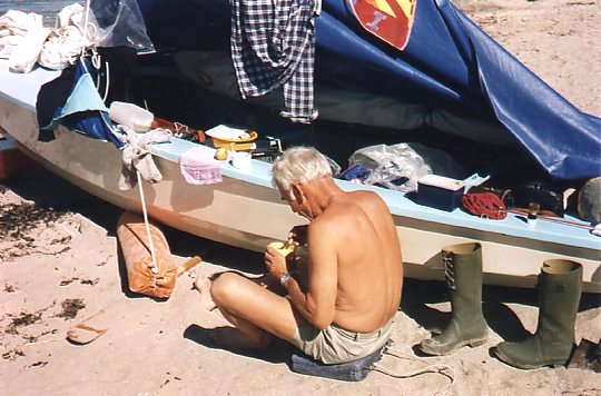 | Morning swim at Bustein Isle . | Ulabrand famous pilot working the dangerous rocky waters along the South Coast . | Breakfast"(Ken + W1348) Last morning. W2042 will be heading for Strömstad, Sweden(+ DK), and W1348 will set course for Skjæløy on the eastern shore of the Oslofjd. , NW of Frederikstad . |