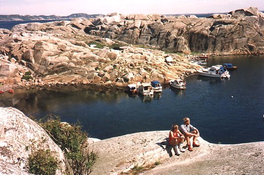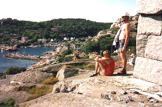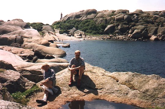 | Neel + Bo with the mainland up to the left in the background and the W.s down below . | Bo & Ken relaxed . |